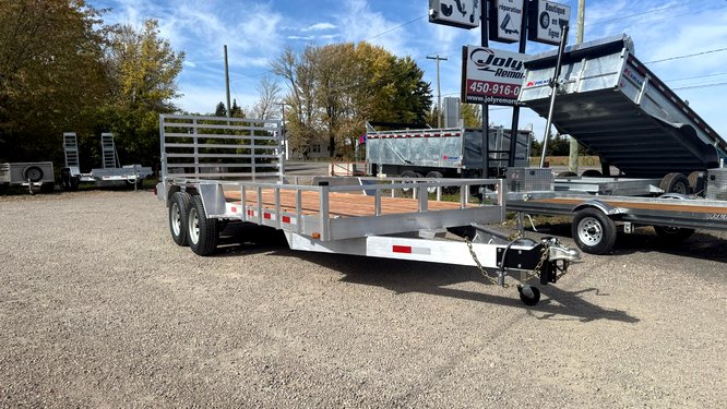 Remorque 6×16 en aluminium 2X3500 lbs avec freins côtés ajourés et panneau rampe 2025